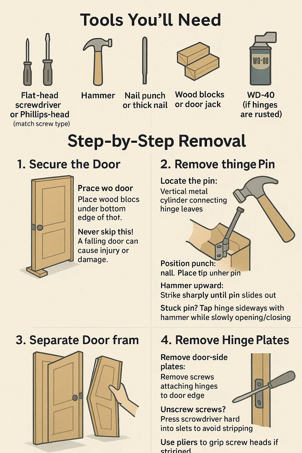 পিনগুলি সরানো হলে দরজাটি উল্লম্বভাবে তুলুন।