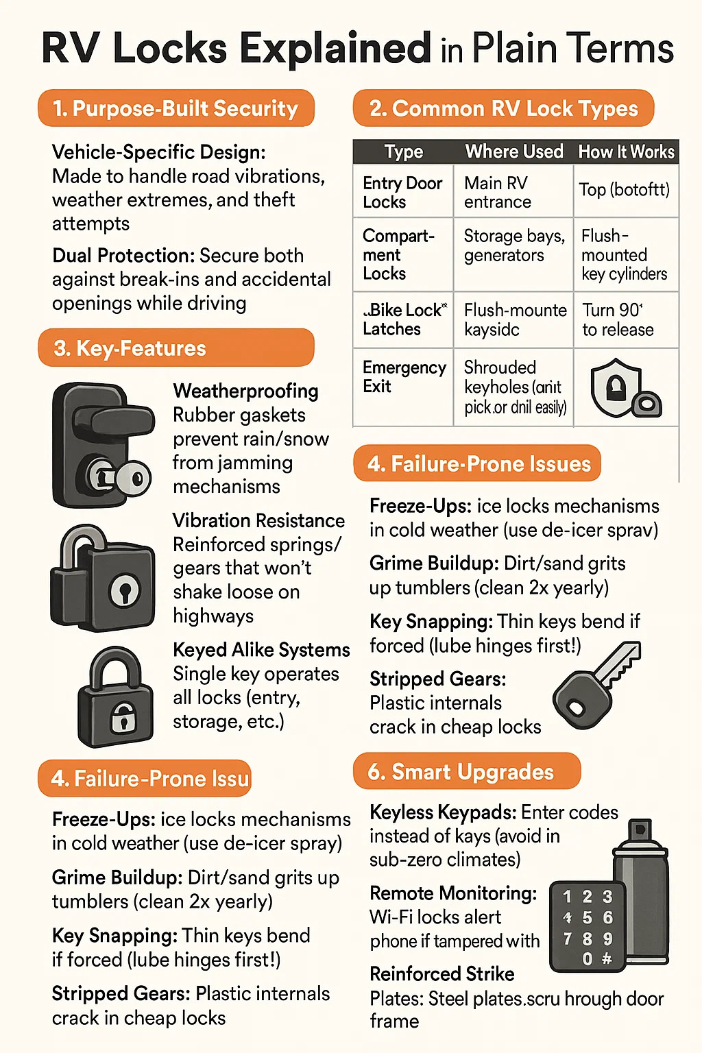 এন্ট্রি ডোর লক প্রধান RV এন্ট্রান্স কীড ডেডবোল্ট ল্যাচ কম্বো; প্রায়ই ডাবল-বোল্টেড (উপরে/নীচে)